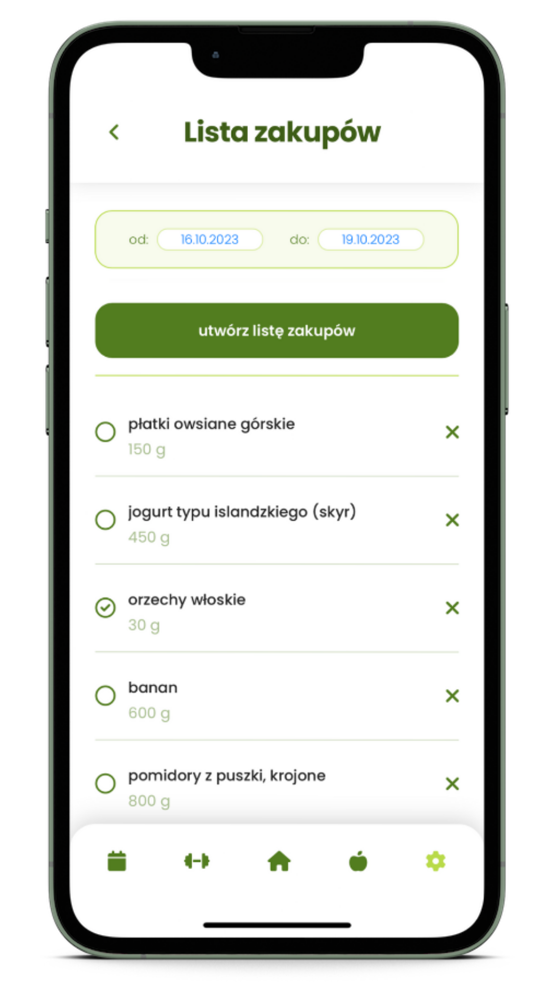 planer posiłków z listą zakupów
